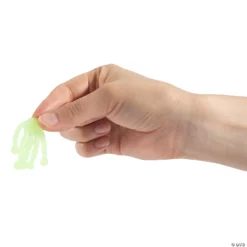 These little fingers are glowing frightful fun! Kids will have a blast sticking them to tables, mirrors and walls. Turn off the light and watch them glow! These tumbling skeleton hands are a great alternative to candy for trick-or-treaters and as a Halloween party favor in the classroom or daycare. Vinyl. (4 dozen per unit) 1 3/4″ © OTC