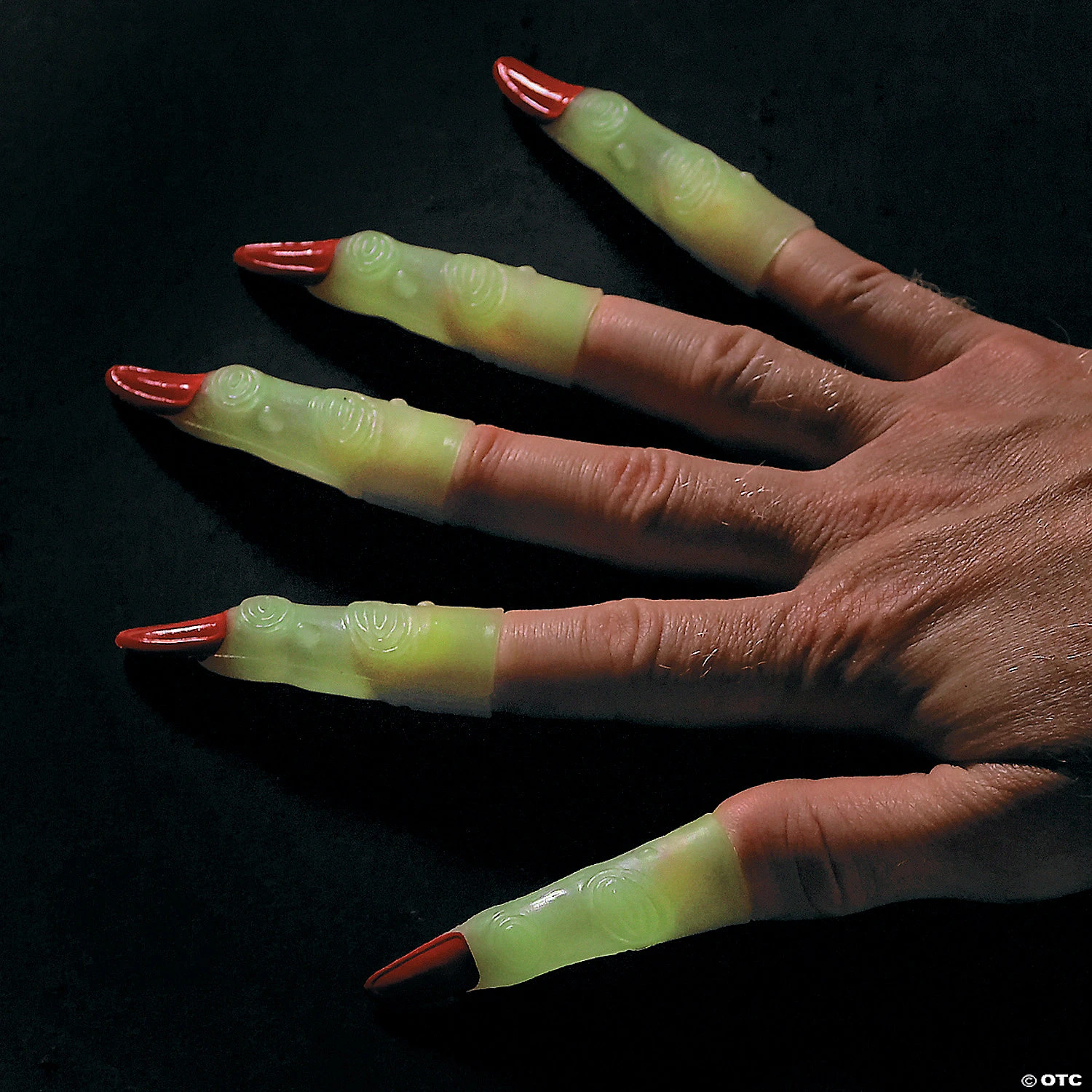 Glow-In-The-Dark Martian Fingers. These vinyl glow-in-the-dark Martian fingers will add some out-of-this-world fun to your Halloween party goody bags. Little ghosts and goblins love wearing these eerie alien accessories with their trick-or-treat costumes! (6 dozen per unit) 3″ Expose items to daylight to activate glow.