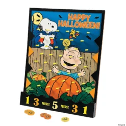 Have some fun with the Peanuts® gang at your Halloween party! This activity is perfect for both indoor and outdoor use. Simple and fun, it’s a great way to keep everyone energetic and laughing at your safe celebration. Take it along to trunk-or-treat or school celebrations and award prizes to the person who racks up the most points with the included 6 Discs! Wood. (7 pcs. per set) Support dowel, 20 1/2″; board, 15 3/4″ x 20 1/4″; Disks, 1 1/2″ diam. Simple assembly required. Only at OTC / © 2016 Peanuts Worldwide LLC
