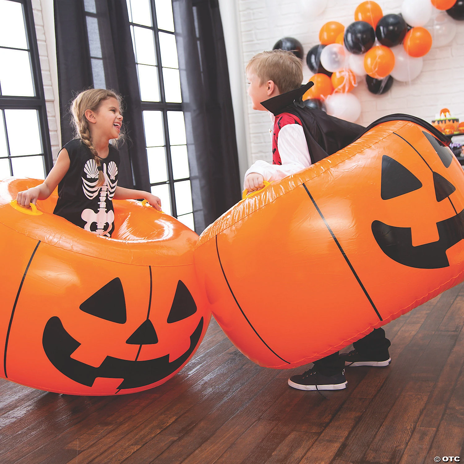 Active party games, like these Pumkin Body Boppers, are terrific ice breakers and get guests away from their devices and involved in the fun. Host a fun fall carnival or Halloween party and use these body boppers as one of your central activities for guests. They’ll love engaging in friendly competition, regardless of their age! Our Pumpkin Inflatable Body Bopper Set is made of heavy-duty vinyl. Inflated, 22″ x 40″ diam. with 2 handles and a 20″ inner diam. well. (2 pcs. per set) To prevent popping, use caution not to over inflate. © OTC