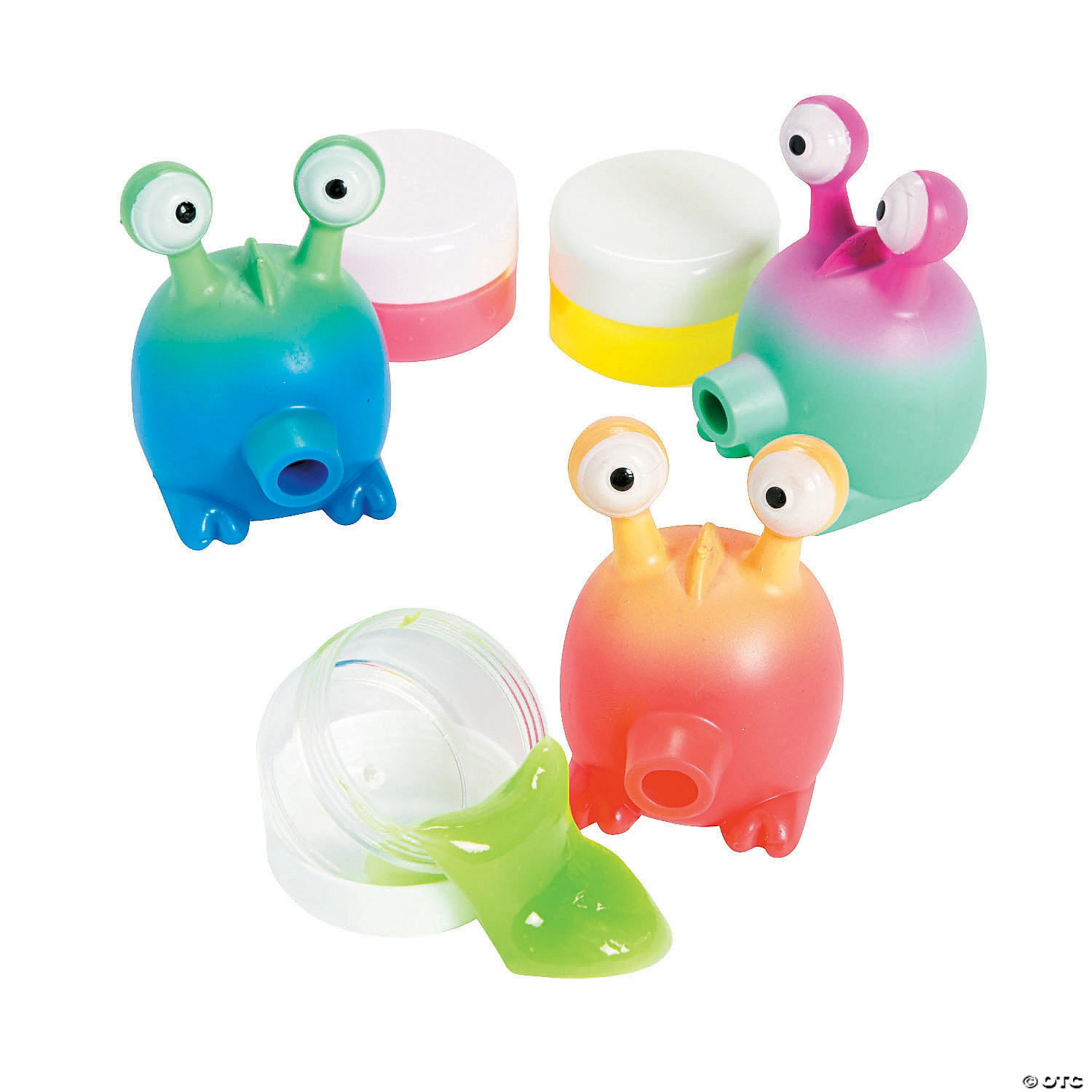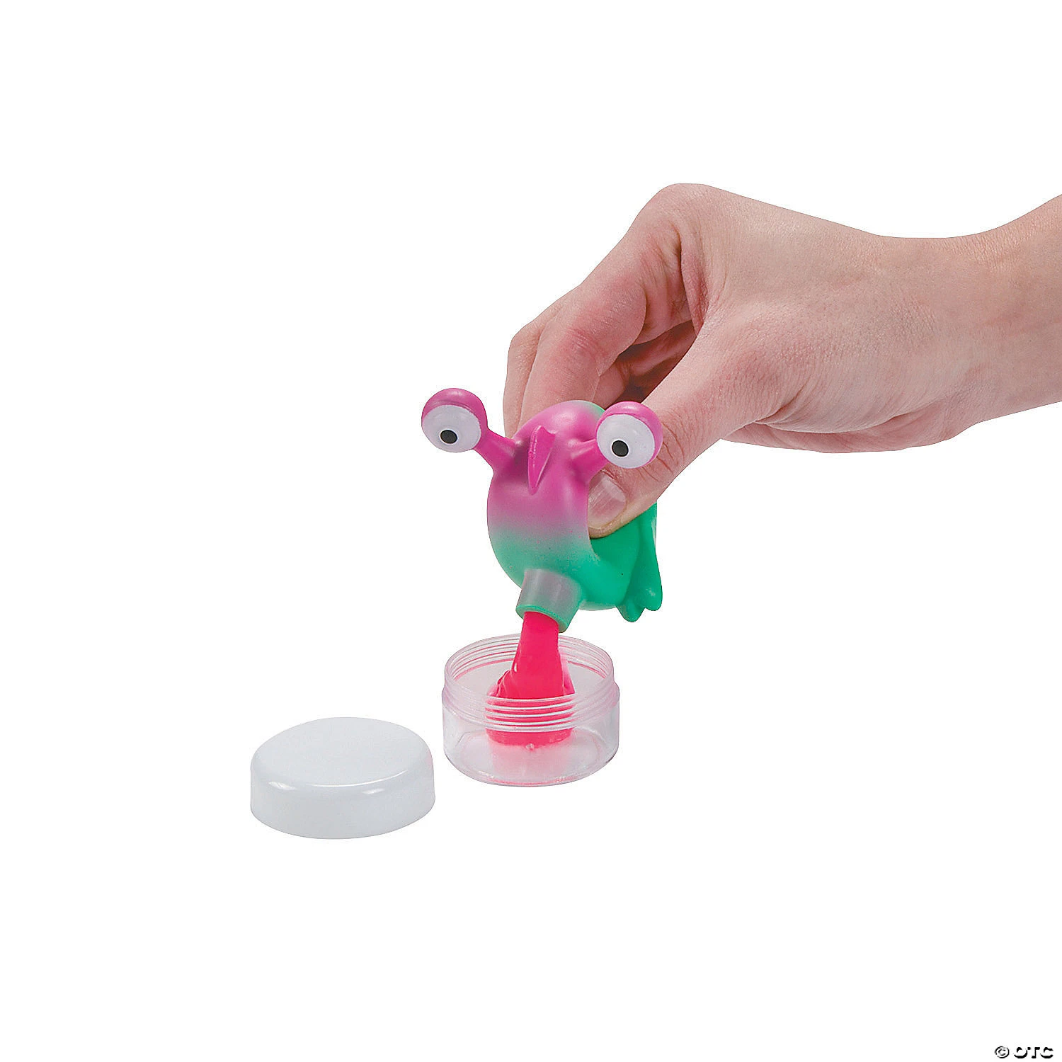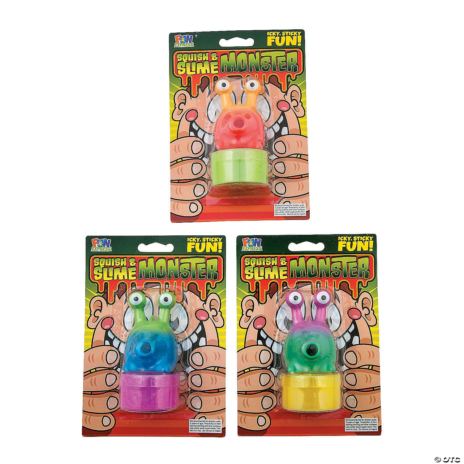 Squeeze the monsters to suck in and spit out the slime. Just the kind of fun kids’ scream for.• Assorted• Material: Vinyl.• Size: 3 1/2″• Safe and non-toxic.• (6 pcs.)